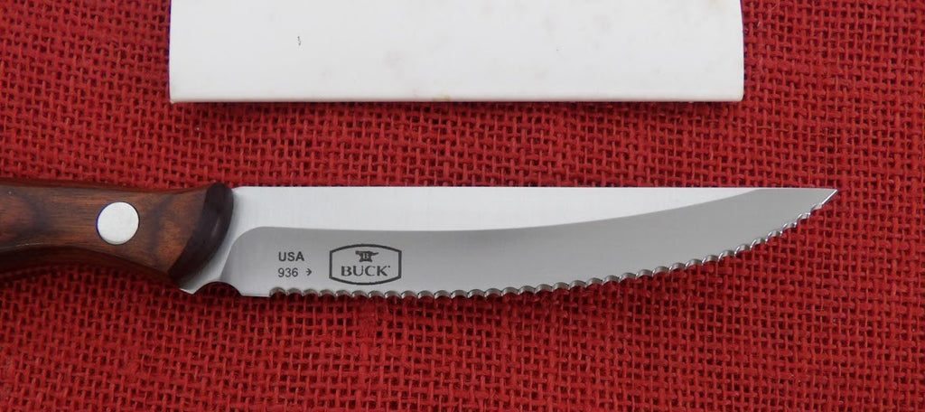 The Buck Knives' Steak Knife combines elegance and functionality to elevate your dining experience. Featuring a serrated blade made from 420HC stainless steel, this knife is designed to easily slice through steaks and other meats. With a full tang construction, the steak knife offers superior strength and balance, making it a reliable addition to your cutlery set.