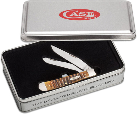 The antique bone handle of this knife features Case's Corn Cob pattern of jigging and a deep amber color. The Trapper gets its name from the consumer it was designed for. Because of its basic trapping and skinning blades and its lightweight, it is a must-have knife for those who trap small game. It is a jack knife with two full-length blades; a slender Clip and a long Spey. The Clip blade is commonly used as a multi-purpose blade and preferred for detail work while the Spey blade is commonly used as an all-purpose utility blade. This knife is constructed with Case Tru-Sharp stainless steel which is a special high-carbon steel that helps the blades hold an edge longer than conventional steel. It also offers extraordinary blade strength and corrosion resistance. This 2020 SHOT Show exclusive version comes packed in a gift tin.
