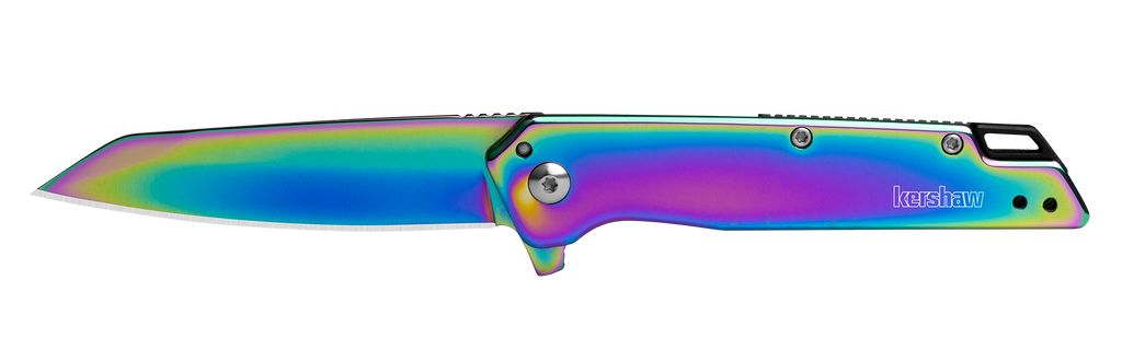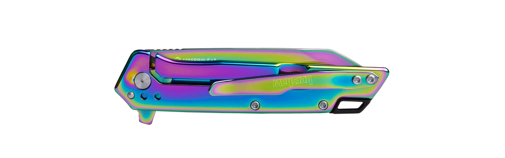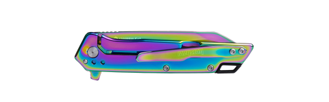 - Starter Series everyday carry folder; eye-catching, rainbow PVD blade and handle finish