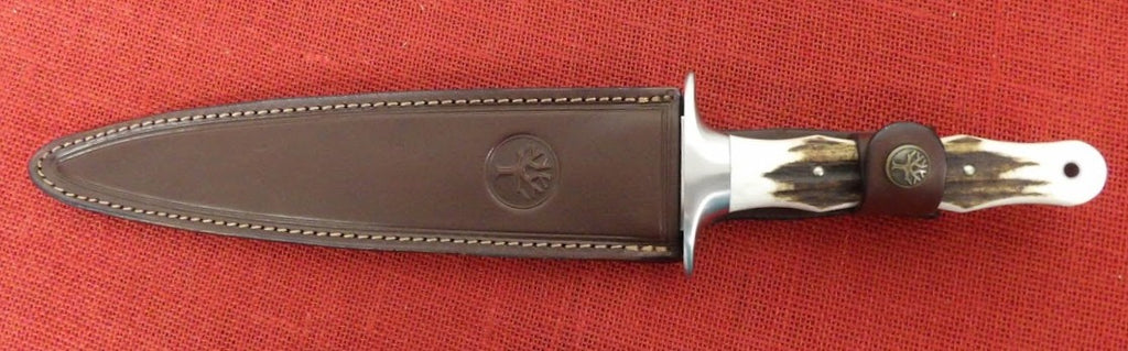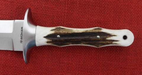The Boker Arbolito Colmillo is a classic stag knife with a long dagger blade and impresses even experienced hunters with its sturdy full tang construction and considerable size. .