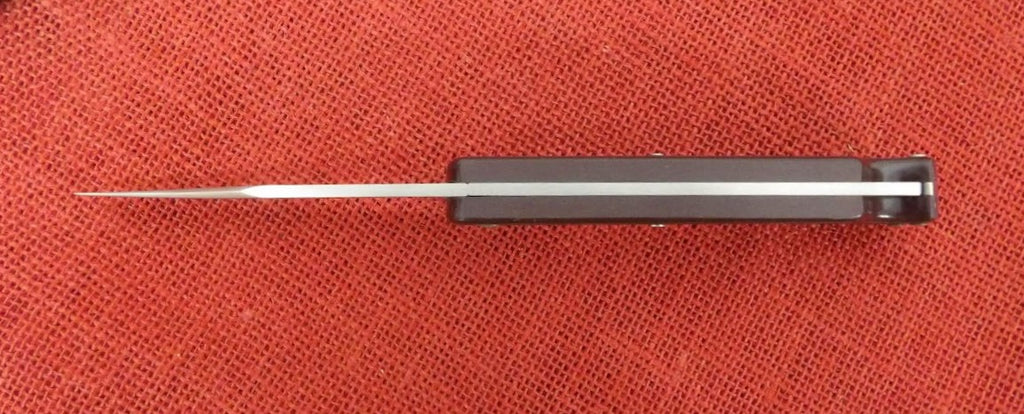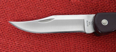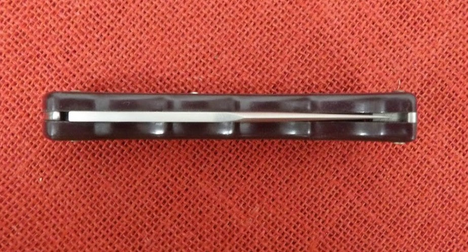 First generation of BuckLites (1984-1987) were built from two pieces of Valoxª sandwiched on either side of the blade, a standard lockback "rocker" and a small tension bar extending from an inner plate that formed the end of the handle. This was all held together at the end with two brass rivets. The blade rotated on a slightly larger brass rivet up front, and the rocker pivoted on a small steel pin positioned about one-third of the handle length back from the blade. This was a very elegant way to apply the new material to an existing design, and one that allowed for the re-use of a number of components, such as the blades and rocker. It turned out to be a design that helped sales of the BuckLite take off from the very beginning, too, since the overall dimensions and operation so closely matched those of the other models, and were thus very familiar, but with a nice savings in both cost and weight. BuckLites weren't just lighter on your belt; they were lighter on your wallet too!
