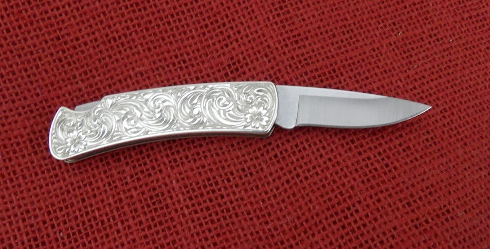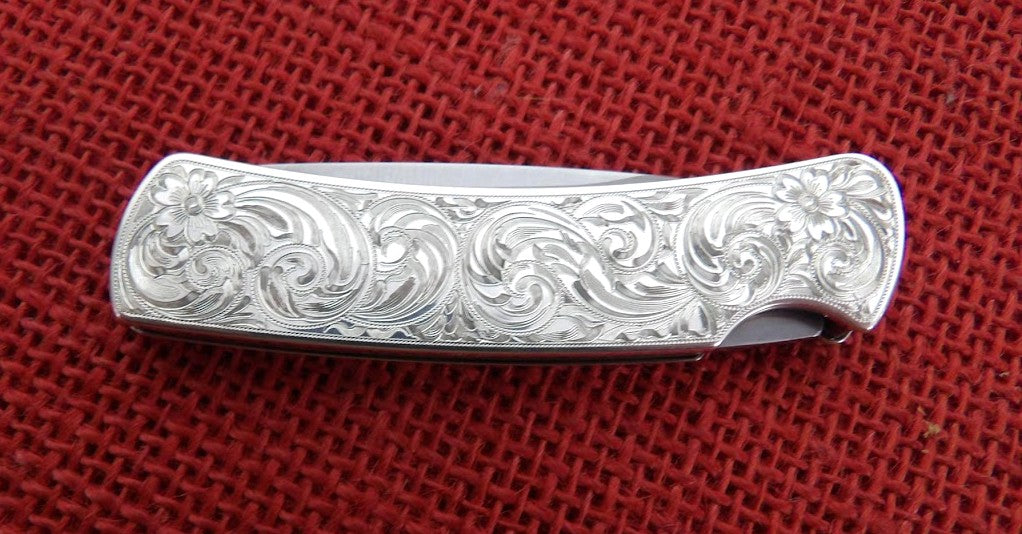 Limited edition buildout. It features a 2012 blade with .925 Sterling Silver handles with classy 24K gold scroll work, and a shield on one side that is ready for your monogram. Approximately 100 were produced. Both sides are marked AFC .925 as pictured. Details: Model: 525BO-B Condition :